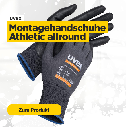 Top uvex athletic allround Handschuhe: Atmungsaktiv, robust & bequem! Perfekt für mechanische Arbeiten, dank hoher Abriebfestigkeit & sicherem Griff in trockenen & leicht feuchten Umgebungen. Tast- & Fingerspitzengefühl top bei Montage kleiner Teile. EN 388 zertifiziert, "Slim-fit" Design. Ideal für Instandhaltung, Montage & Transport.