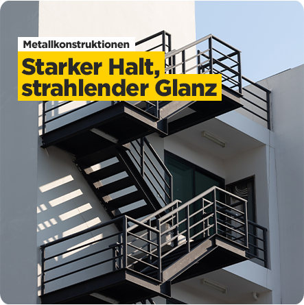 Außen mit direkter Bewitterung: Geländer, Zäune, Regenrinnen, Tore, Fenster, Fensterläden, Fensterbänke, Säulen, Träger, Metallgaragen, Stahlkonstruktionen, Fassadenbleche